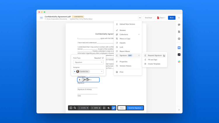 このような背景から、私たちは、Boxのクラウド・コンテンツ・マネジメント・プラットフォームに、セキュアで法や制度に準拠した電子サイン機能を組み込むことにしました。SignRequestの買収と、今夏に予定されているBox Signのリリースによって、コンテンツの全ライフサイクルを単一のクラウドプラットフォーム上で完結できるようになります。Box Signは、ビジネスプランとエンタープライズプランに組み込むことを予定しており、Boxの高度なデータガバナンス、コンプライアンス、セキュリティの機能とネイティブに統合することで、ビジネスの規模や業界を問わず、あらゆるお客様のニーズに対応できるようになる見込みです。詳しくは、BoxのWebサイト(英語)をご覧ください。